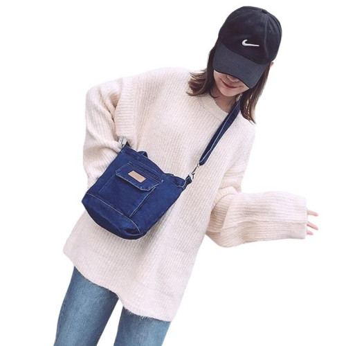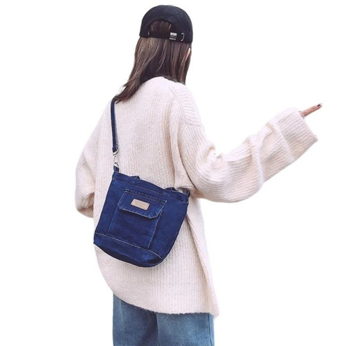 Внутри: одно отделение с открытым карманом для телефона, документов и различных мелочей. Снаружи, на передней стенке, расположен закрывающийся карман. Сумка закрывается на молнию. В комплекте отстёгиваемый джинсовый ремень, регулируемый по высоте.
