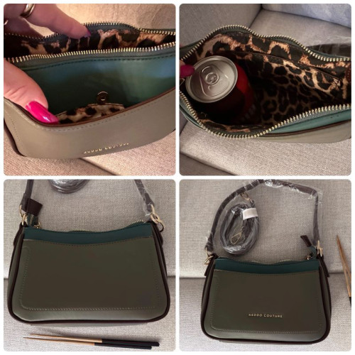 Внутри: одно большое отделение, на боковых стенках которого расположены карманы на молнии и без для телефона, документов и различных мелочей. С внешней стороны на задней и лицевой стороне расположены карманы на кнопках магнитах. В комплекте удлинённый ремень, регулируемый по высоте. Ровное дно позволяет устойчиво фиксировать сумку на поверхности. Ручка и ремень позволяют носить сумку в руке, на запястье, на локте и на плече.