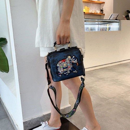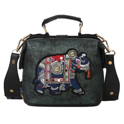 Стильная красивая сумочка на 2026 год. Украшена рисунком слона, выполненном в виде винтажной вышивки.