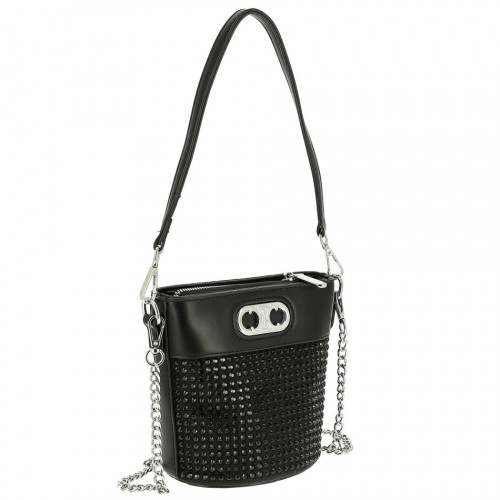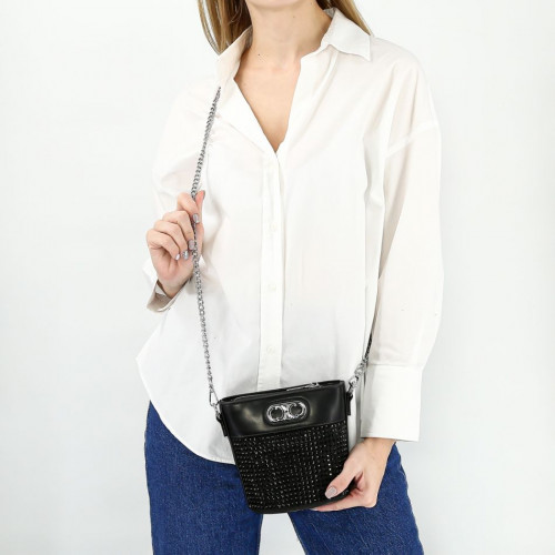 Внутри: одно вместительное отделение с боковым кармашком на молнии. В комплекте съёмная ручка и наплечный ремень-цепочка. Модель хорошо держит форму. Сумка закрывается на молнию.