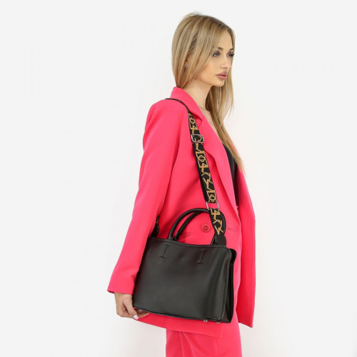 Внутри: несъёмный органайзер с карманами: два открытых и один на молнии для документов, телефона и мелочей. Органайзер закрывается на молнию и пристёгивается к сумке двумя крепкими кнопками-магнитами, тем самым образуя ещё два дополнительных отделения. В комплекте регулируемый по высоте наплечный ремень из высококачественного прочного текстиля. На дне расположены металлические ножки, предохраняющие от потёртостей. Сумка закрывается на молнию.
