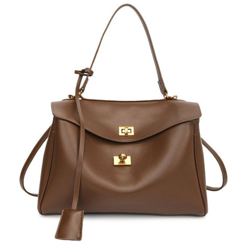 Внутри: два самостоятельных отделения с карманом на молнии для телефона, документов и различных мелочей. Сумка закрывается на крышку-клапан с поворотным замком в двух вариантах (подробнее на фото). Модель хорошо держит форму. В комплекте удлинённый ремень, регулируемый по высоте. На дне сумки расположены металлические ножки. Ровное устойчивое дно позволяет фиксировать положение сумки на поверхности. Сумку можно носить на запястье, на плече, через плечо, на локте или в руке.