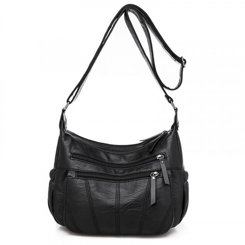 Внутри: два самостоятельных отделения, каждое из которых закрывается на молнию. По бокам расположены карманы на молнии и без для документов, телефона и всяких мелочей. В комплекте удлинённый ремень, регулируемый по высоте.