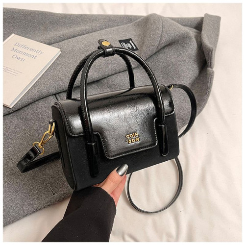 Небольшая удобная сумочка изготовлена из искусственной кожи.