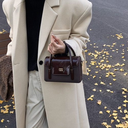 Небольшая удобная сумочка изготовлена из искусственной кожи.
