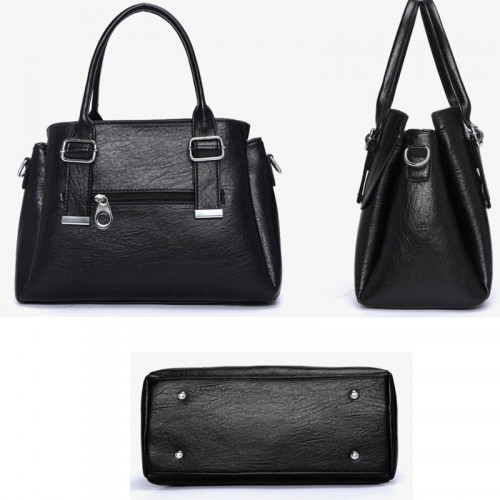 Внутри: три самостоятельных отделения. По бокам центрального отделения расположены карманы на молнии и без для документов, телефона и различных мелочей. На внешней задней стенке расположен карман на молнии. Сумка закрывается на молнию. В комплекте удлинённый ремень, регулируемый по высоте. На дне сумки расположены металлические ножки, предохраняющие её от потёртостей. Сумка хорошо держит форму.