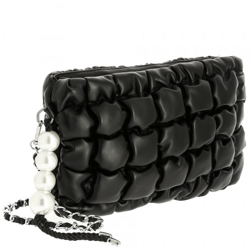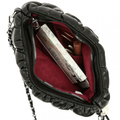 Внутри: одно вместительное отделение с боковым открытым карманом. В комплекте удлинённый наплечный ремень-цепочка. Сумка закрывается на молнию.