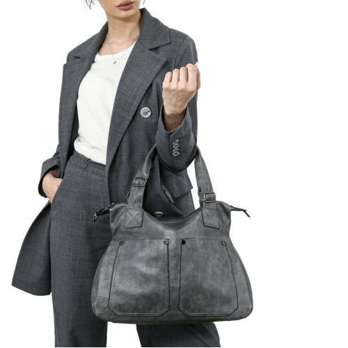 Большая удобная сумочка на каждый день. Модель выполнена из фактурной искусственной кожи высокого качества, внешне не отличимой от натуральной.