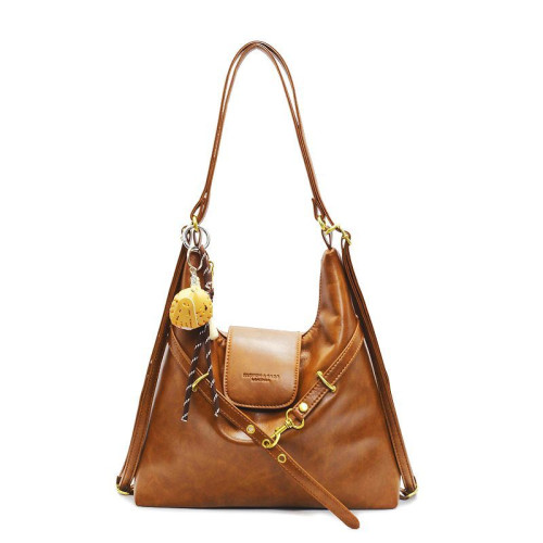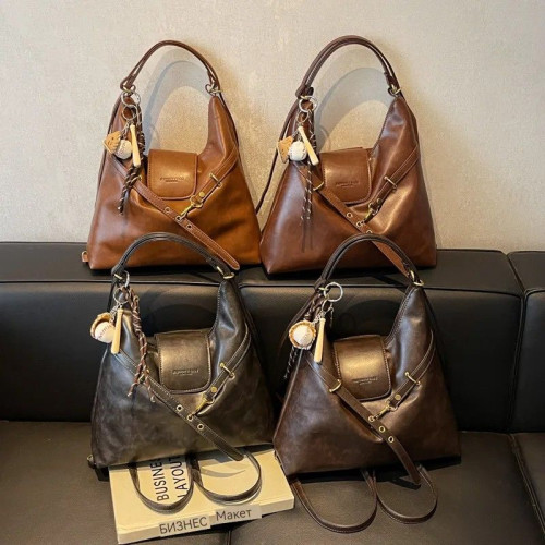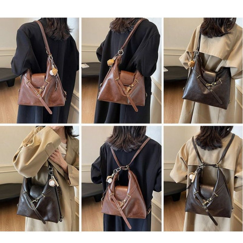 Внутри: одно отделение с карманом на молнии для телефона, документов и различных мелочей. На внешней передней стенке расположен декоративный ремень. Сумка закрывается на молнию и крышку-клапан с крепкой магнитной кнопкой. У сумки имеются длинные ручки, которые перестёгиваются в лямки рюкзака и позволяют носить сумку-рюкзак на плече, на двух плечах, через плечо, на запястье, на локте или в руке. Ровное устойчивое дно позволяет фиксировать положение сумки на поверхности.