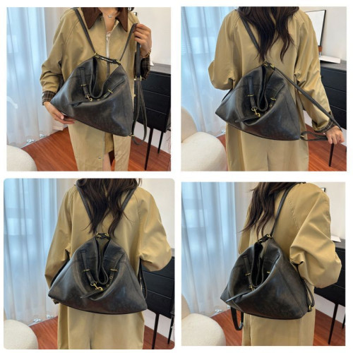 Внутри: одно отделение с карманом на молнии для телефона, документов и различных мелочей. Ручки сумки-рюкзака трансформируются в лямки рюкзака. На внешней передней стенке расположен ремень, который стягивает верхнюю часть сумки для преобразования её в рюкзак или уменьшения визуального объёма сумки. Сумка-рюкзак закрывается на молнию. У сумки-рюкзака имеются длинные ручки-лямки, которые позволяют носить её на запястье, на плече, на локте или в руке.