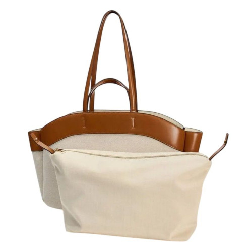 Внутри: одно большое вместительное отделение. В комплекте сумка-вкладыш на молнии для телефона, документов и различных мелочей. Вкладыш пристёгивается к основной сумке думя кнопками. Сумка держит форму. Двойные ручки сумки позволяют носить её в руке, на запястье, на локте и на плече.