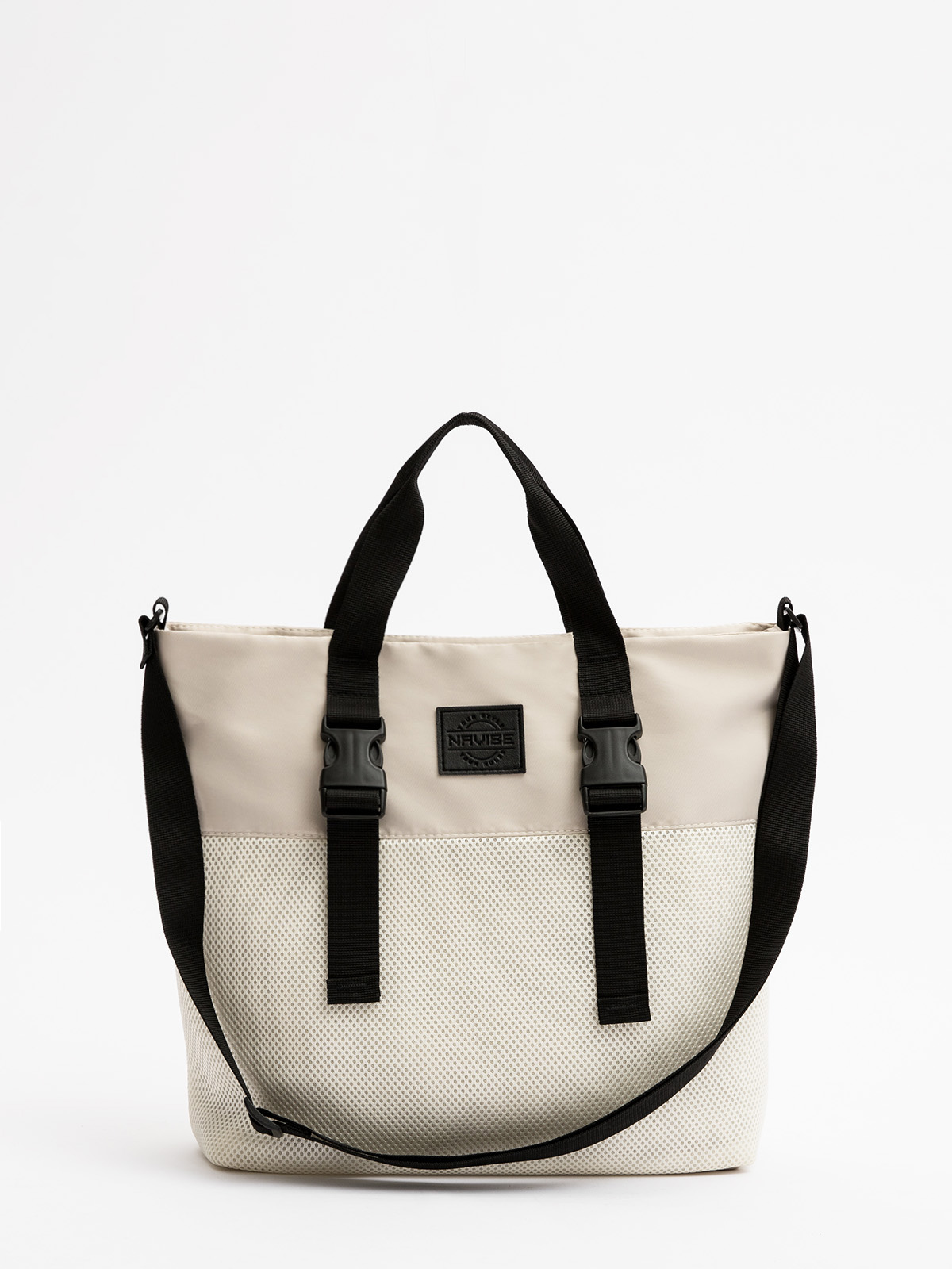 Современный тоут габарита М из объёмной сетки и твила — универсальный аксессуар для активной жизни.