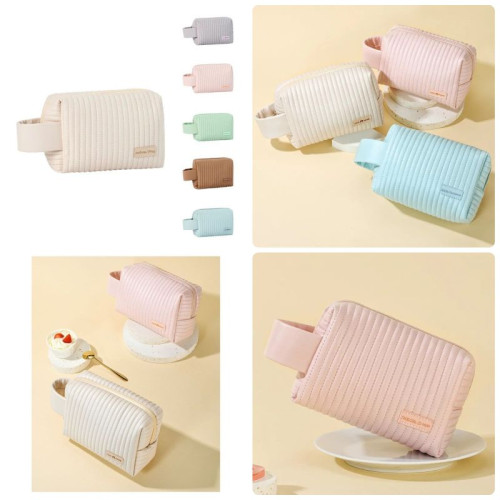 Внутри: одно отделение. Косметичка закрывается на молнию. На внешней боковой части расположена широкая крепкая ручка, позволяющая очень удобно носить косметичку на запястье. Косметичку удобно брать с собой на работу, в дорогу, в путешествие, в поход, на кемпинг, в отпуск.