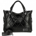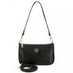 Внутри: три отделения, среднее на молнии. На боковых стенках расположены карманы на молнии и без для телефона, документов и различных мелочей.С внешней стороны на задней стенке имеется карман на молнии. Сумка закрывается на молнию. В комплекте удлиненный кожаный ремень.