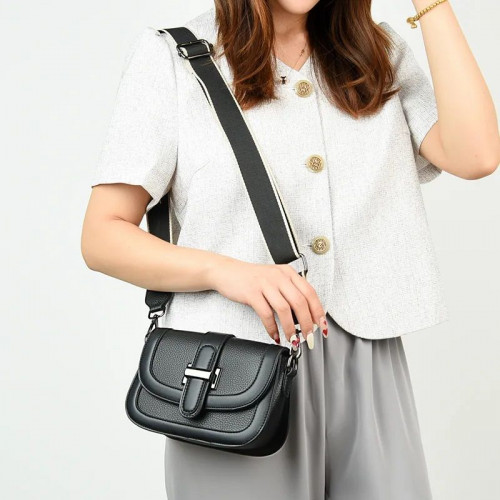 Внутри: одно отделение. Сумка закрывается на молнию и крышку-клапан с крепким замком-магнитом. В комплекте удлинённый ремень, регулируемый по высоте.