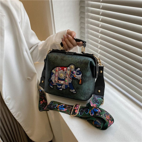 Стильная красивая сумочка на 2025 год. Украшена рисунком слона, выполненном в виде винтажной вышивки.