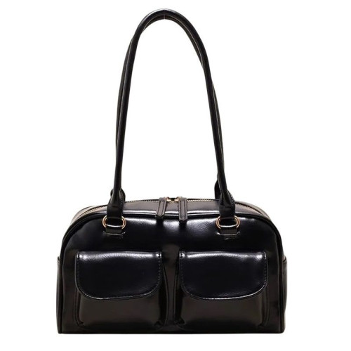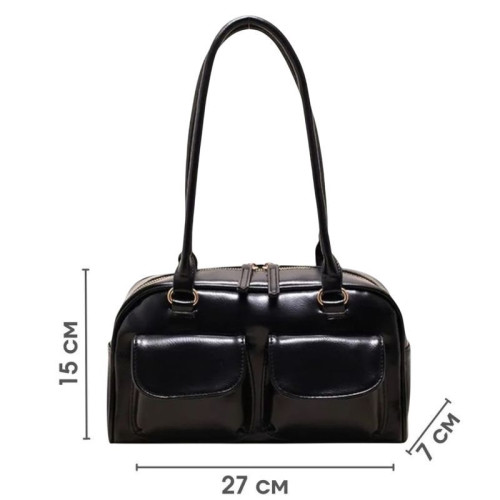 Внутри: одно отделение с карманом на молнии для телефона, документов и различных мелочей. На внешней передней стенке есть два кармана, закрывающихся на крышку клапан с крепкими кнопками магнитами. Сумка закрывается на молнию. У сумки имеются длинные ручки, которые позволяют носить её на плече, на локте или в руке. Модель хорошо держит форму. Ровное устойчивое дно позволяет фиксировать положение сумки на поверхности.