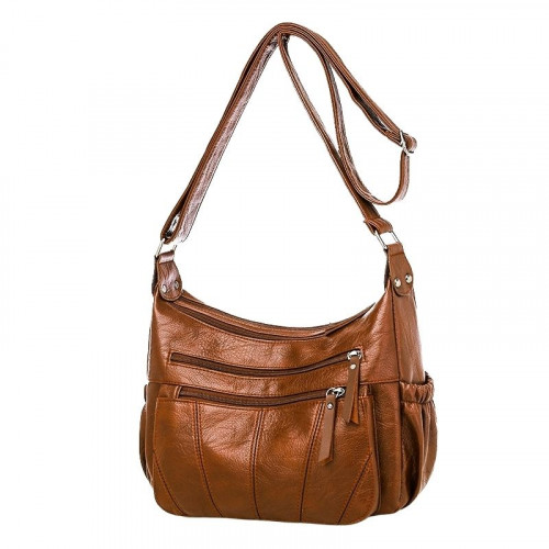 Внутри: два самостоятельных отделения, каждое из которых закрывается на молнию. По бокам расположены карманы на молнии и без для документов, телефона и всяких мелочей. В комплекте удлинённый ремень, регулируемый по высоте.