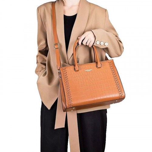 Внутри: три отделения, среднее закрывается на молнию. По бокам расположены карманы на молнии и без для документов, телефона и всяких мелочей. На внешней задней стенке так же имеется карман на молнии. Сумка закрывается на молнию. В комплекте удлинённый ремень, регулируемый по высоте. На дне имеются металлические ножки, защищающие сумку от потёртостей.