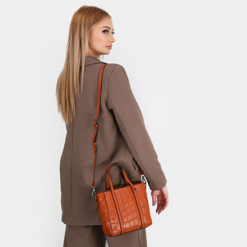 Сумка выполнена из натуральной фактурной телячьей кожи с выделкой под кожу крокодила.