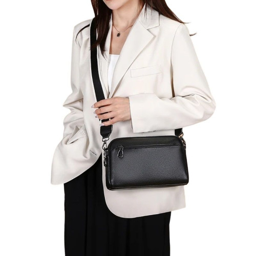 Внутри: два самостоятельных отделения на молнии. По бокам внутренних отделений расположены карманы на молнии и без для телефона, документов и различных мелочей. На внешней передней и на задней стенке расположены карманы на молнии. В комплекте удлиненный текстильный ремень, регулируемый по высоте.
