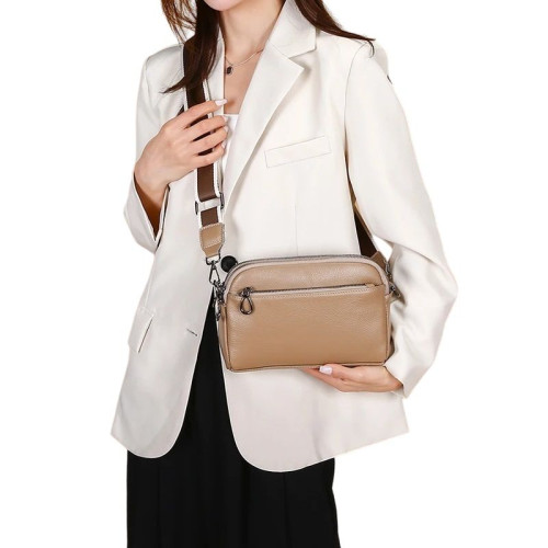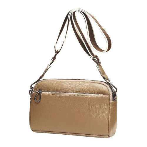 Внутри: два самостоятельных отделения на молнии. По бокам внутренних отделений расположены карманы на молнии и без для телефона, документов и различных мелочей. На внешней передней и на задней стенке расположены карманы на молнии. В комплекте удлиненный текстильный ремень, регулируемый по высоте.