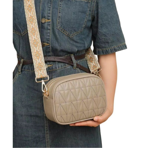 Внутри: одно отделение. По бокам внутреннего отделения расположены карманы на молнии и без для телефона, документов и различных мелочей. На внешней задней стенке есть карман на молнии. Сумка закрывается на молнию. В комплекте удлиненный ремень, регулируемый по высоте.
