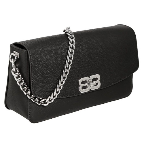 Внутри: одно отделение и сумка-вкладыш. По бокам расположены карманы на молнии и без для телефона, документов и различных мелочей. Сумка закрывается на крышку-клапан с поворотным замком. В комплекте две съёмные ручки: одна из натуральной кожи, вторая ручка-цепочка. У сумки имеется удлинённый кожаный ремень, регулируемый по высоте.