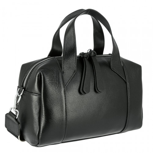 Внутри: одно вместительное отделение с боковыми карманами: два на молнии и два открытых для документов, телефона и мелочей. На дне сумки расположены металлические ножки, предохраняющие от потёртостей. В комплекте два удлинённых наплечных ремня: один из натуральной кожи, второй из высокопрочного текстиля. Модель хорошо держит форму. Сумка закрывается на встречную молнию.