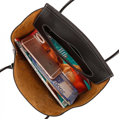 Внутри: одно большое отделение. На боковой стенке расположен накладной карман, состоящий из двух отделений, одно из которых закрывается на молнию. На дне сумки имеются металлические ножки, предохраняющие от потёртостей.