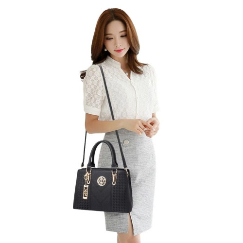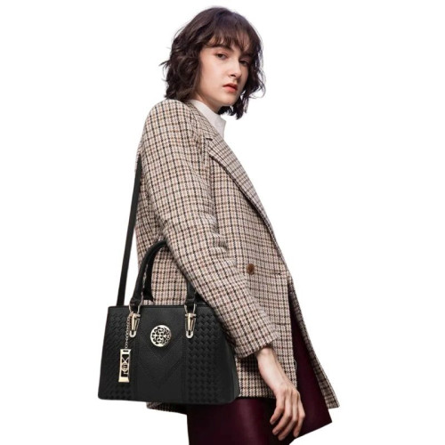 Внутри: три отделения, среднее на молнии. По бокам расположены карманы на молнии и без для телефона, документов и различных мелочей. На внешней задней стенке расположен карман на молнии. Сумка закрывается на молнию. На дне имеются металлические ножки, предохраняющие сумку от потёртостей. В комплекте удлинённый ремень, регулируемый по высоте.