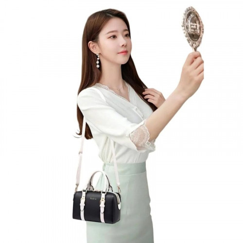 Внутри: одно отделение. По бокам расположены карманы на молнии и без для телефона, документов и различных мелочей. Сумка закрывается на молнию. На дне сумки имеются металлические ножки для защиты от повреждений и потёртостей. В комплекте удлинённый ремень, регулируемый по высоте.