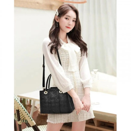 Внутри: три самостоятельных отделения, среднее закрывается на молнию. По бокам центрального отделения расположены карманы на молнии и без для документов, телефона и различных мелочей. Боковые отделения закрываются на крепкие кнопки-магниты. Модель хорошо держит форму. На дне расположены металлические ножки, предохраняющие сумку от потёртостей. В комплекте удлинённый ремень, регулируемый по высоте.