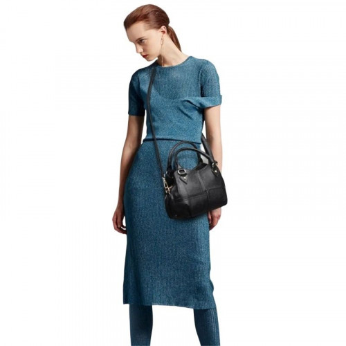 Внутри: три отделения. По бокам центрального отделения расположены карманы на молнии и без для документов, телефона и различных мелочей. Сумка закрывается на молнию. На внешней задней стенке расположен карман на молнии. В комплекте удлинённый ремень, регулируемый по высоте.