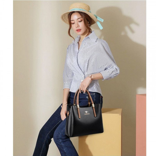 Внутри: три самостоятельных отделения, среднее на молнии. Два боковых отделения закрываются на крепкие кнопки-магниты. На боковых стенках среднего отделения имеются карманы на молнии и без для телефона, документов и различных мелочей. На дне сумки расположены металлические ножки, предохраняющие от потёртостей. В комплекте удлинённый наплечный ремень. Сумка закрывается на молнию.