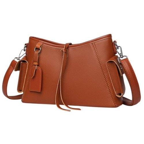 Внутри: три самостоятельных отделения - среднее закрывается на молнию, а два других закрываются на крепкие кнопки-магниты. По бокам среднего отделения расположены карманы: один на молнии и один открытый для документов, телефона и мелочей. В комплекте удлинённый наплечный ремень. На дне сумки расположены металлические ножки, предохраняющие от потёртостей. Модель хорошо держит форму. Сумка закрывается на молнию.
