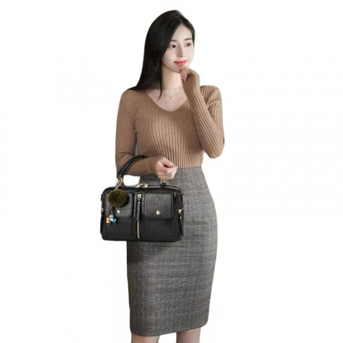 Внутри: одно большое отделение. По бокам расположены карманы на молнии и без для документов, телефона и различных мелочей. На внешней задней стенке расположен карман на молнии. Сумка закрывается на молнию. В комплекте удлинённый ремень, регулируемый по высоте. На дне сумки расположены металлические ножки, предохраняющие её от потёртостей. Сумка хорошо держит форму.