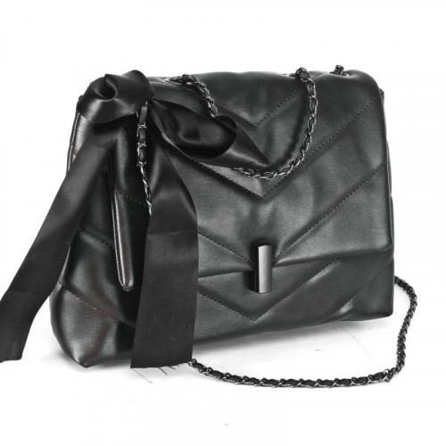 Внутри: одно отделение. По бокам внутреннего отделения расположены карманы на молнии и без для телефона, документов и различных мелочей. Сумка закрывается на молнию и крышку-клапан с замочком. У сумки имеется удлинённый двойной ремень-цепочка.