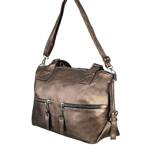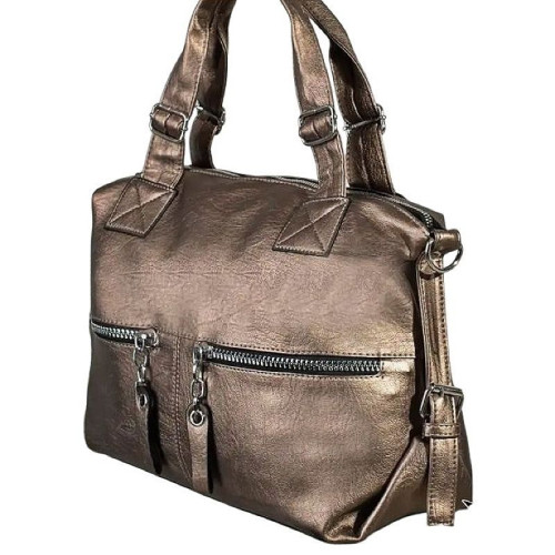 Внутри: одно большое отделение. На внутренних стенках сумки имеются карманы: один на молнии и один открытый, которые служат для переноски и хранения телефона, документов и разных мелочей. На внешней задней стенке имеется карман, который закрывается на молнию. На внешней лицевой стороне так же присутствуют карманы на молнии. В комплекте идёт удлиненный, регулируемый по высоте, наплечный ремень. Сумка закрывается на молнию.