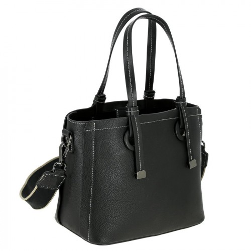 Внутри три отделения: одно на молнии и два на крепких кнопках-магнитах. На боковых стенках среднего отделения расположены карманы: один на молнии и один открытый для телефона, документов и мелочей. На дне сумки имеются металлические ножки, предохраняющие от потёртостей. В комплекте два удлинённых наплечных ремня: один из натуральной кожи, второй из высококачественного текстиля. Модель хорошо держит форму. Сумка закрывается на молнию.