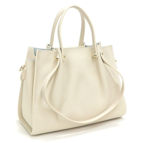 Внутри: три самостоятельных отделения. По бокам центрального отделения расположены карманы на молнии и без для документов, телефона и различных мелочей. Среднее отделение закрывается на молнию. По бокам центрального отделения расположены два отделения, закрывающихся на крепкие кнопки-магниты. В комплекте удобные короткие и длинные ручки-ремешки для ношения сумки в руке, на локтевом сгибе и на плече.