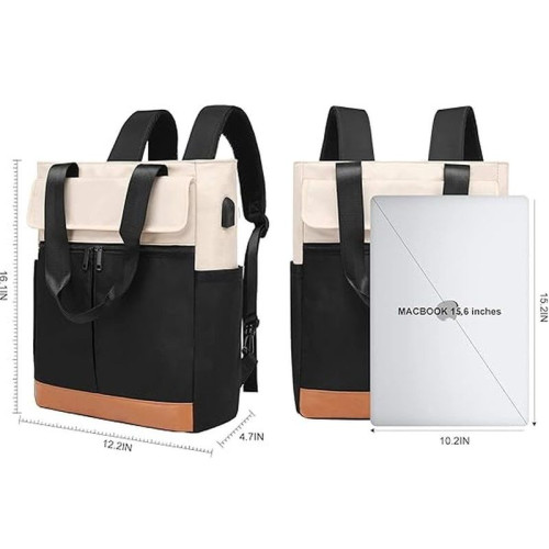Внутри: одно большое отделение, по бокам которого расположен карман на молнии и карман без молнии для планшета, ноутбука, документов и различных мелочей. На внешней передней стенке расположено два кармана на молнии и один карман без молнии, закрывающийся на крышку-клапан. На внешней задней стенке расположен карман на молнии. Лямки регулируются по высоте. Рюкзак можно носить как сумку. В комплекте есть USB шнур.