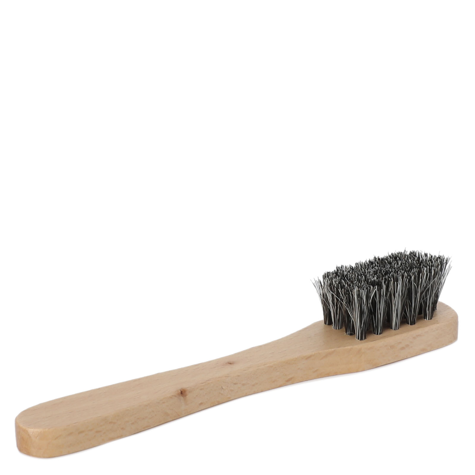 Щетка изготовлена из натурального конского волоса, ручка – из древесины. Щетка предназначена для очищения обуви из гладкой кожи от незначительных сухих загрязнений (песка, пыли) и нанесения крема, в том числе на труднодоступные места. При уходе за обувью щетку необходимо периодически промывать теплой водой с бытовыми моющими средствами. Можно использовать для чистки одежды.