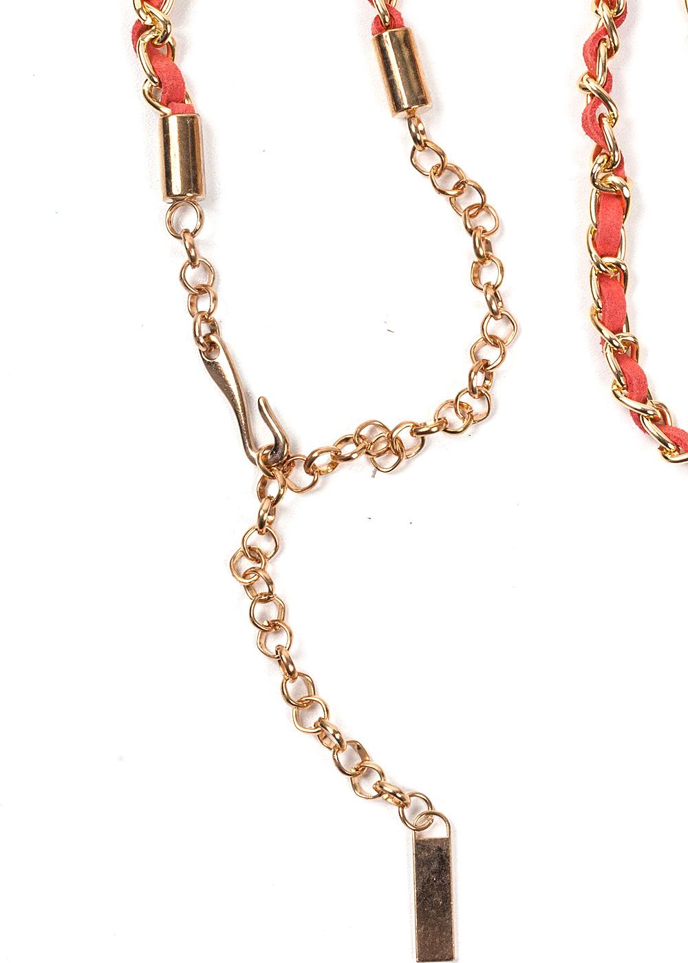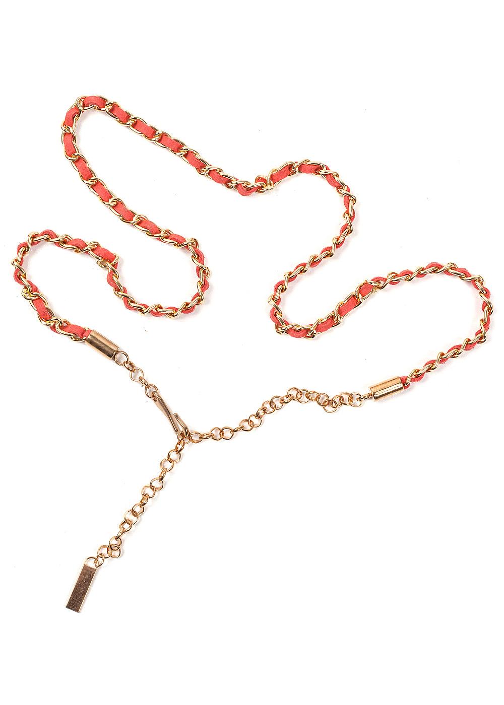 Металлический ремень-цепочка с вставкой из искусственной замши. Застежка на крючок. Длина 117см.