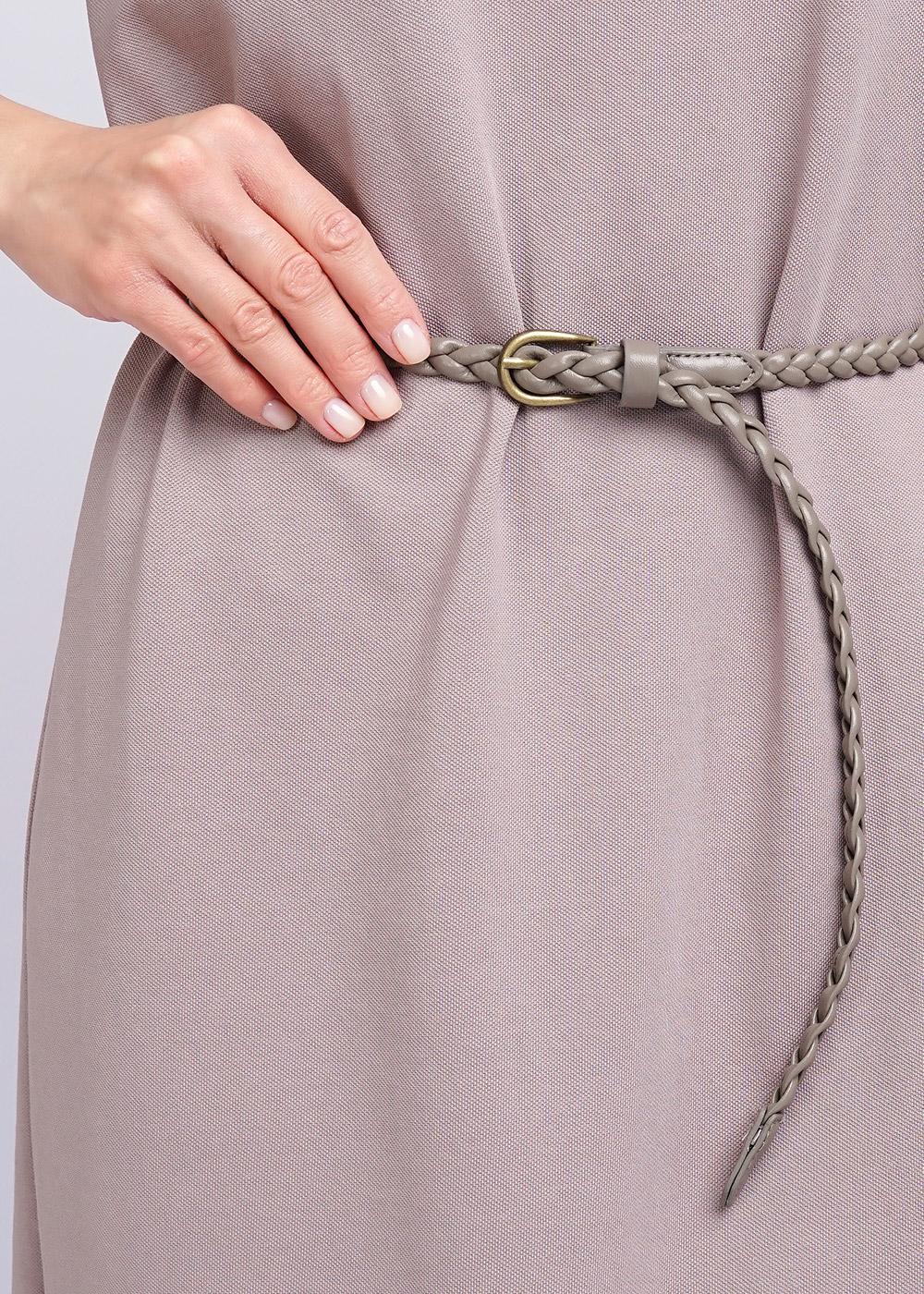 Плетёный ремень из искуссвтенной кожи. Застежка на металлическую пряжку и шлевку. Длина 100,5 см (без учёта пряжки).