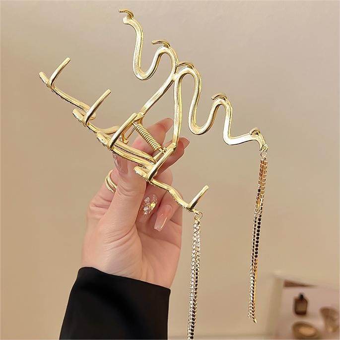 Краб для волос металлический сверкающий Змейка с Цепочками Цвет: ЗОЛОТО