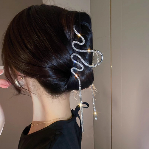 Красивый крабик для волос в форме с..показатьеребристого зиг-зага с подвесками прекрасно дополнит Ваш образ. Крепкий и надежный заколка-краб для густых и нормальных волос отличный вариант для быстрой прически. Крабик станет незаменимым аксессуаром для волос в повседневной жизни и подойдет для вечернего образа или фотосессии.Блестящие кристаллы на крабе создают особый шарм. еребристого зиг-зага с подвесками