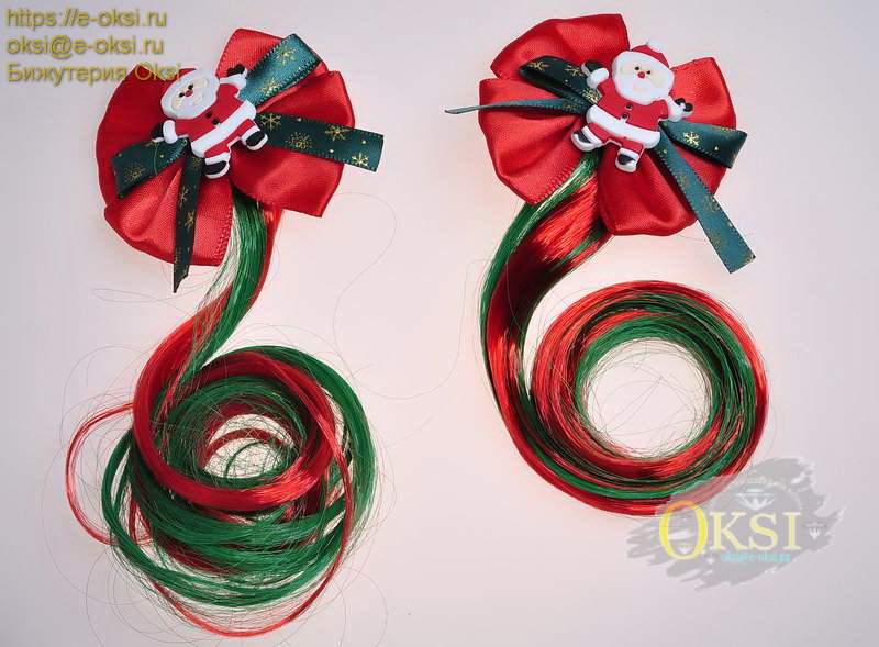 Яркий, эффектный комплект ( 2 шт) цветных локонов на заколке-уточке украшенных фигурками Деда Мороза ( смотреть второе фото). Украшение - локоны создадут праздничную атмосферу на любой вечеринке. Подойдут как взрослым так и детям. Удобно и надежно фиксируют прическу и не мешают вести активный образ жизни. Длина пряди около 30 см, цена две заколки.