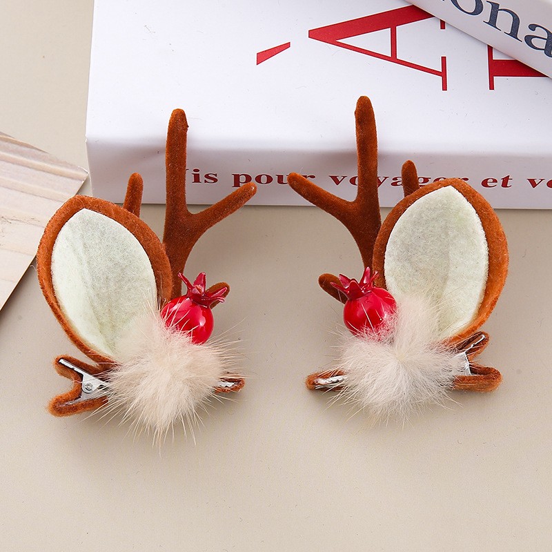 Новогодние заколки "Ушки Оленя с рожками", Набор 2 штуки. ЯГОДКА и ПУШИСТЫЙ ШАРИК