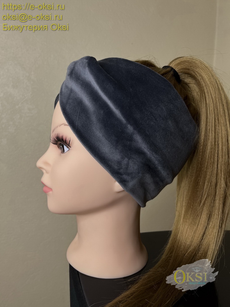 Теплый, широкий, двухслойный аксессуар для волос из плотного, высококачественного велюра переливающегося серебристо - серого оттенка . Удобно и комфортно держится на волосах, не сползает и не портит прическу. Ширина полосы 12 см. Длина в нерастянутом виде 46 см ( может растянуться до 56 -58 см)